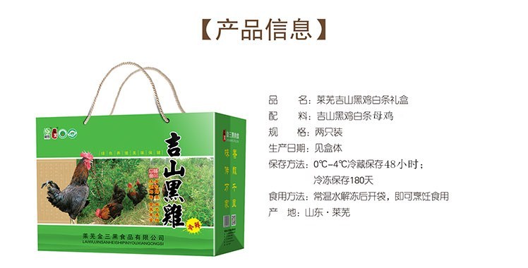 产品主要有用莱芜黑猪、莱芜黑山羊、莱芜吉山黑鸡、莱芜黑兔生产的冷鲜食品、调理食品及熟食制品